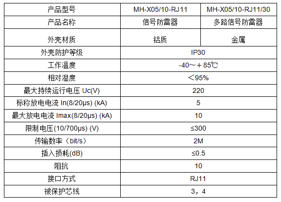 產品的接口形式為標準RJ11水晶接頭,有單口RJ11、20口和30口RJ11保護,單口信號電涌保護器可以保護1對/2對通訊線路。多口產品可安裝在19寸標準機柜內,安裝維護方便。