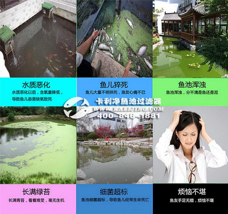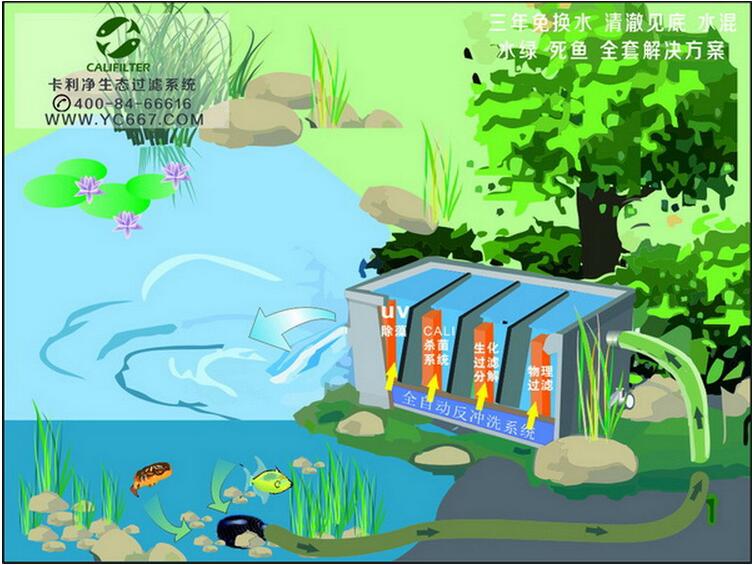 由于魚類的排泄物與殘餌超過微生物濾床所能分解硝化的能力,從而使腐生的細菌增長,造成水質的惡化,產生碳化物,使池水污濁不清,影響觀瞻、危害魚類的健康。若大量過勤換水,引起溫度、酸解度及溶解氧等經常改變,影響到有益的硝化細菌的繁殖和硝化作用;水質及水溫的過大變化都會影響魚類的生長及危害魚類的健康。所以養魚之前一定要有一套強大的過濾系統,這樣省時省力真正做到“輕松養魚,悠閑看景”。