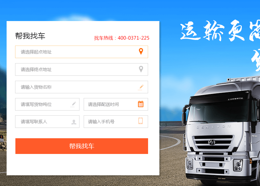 填寫您的相關信息,點擊幫我找車,我們的物流專員會及與您聯系;或者您也可以直接撥打客服電話 400-0371-225 把您的需求直接告訴我們的客服。